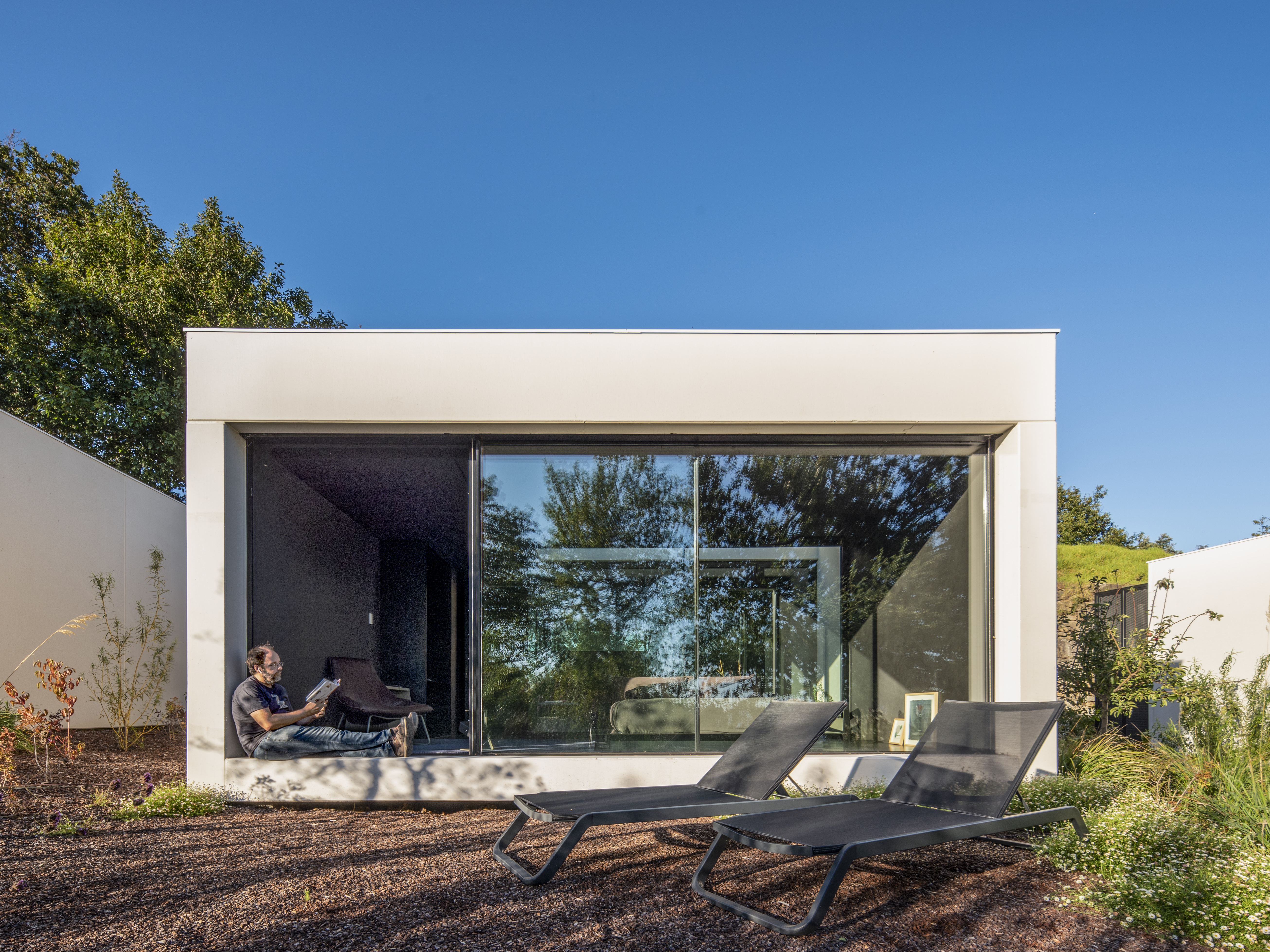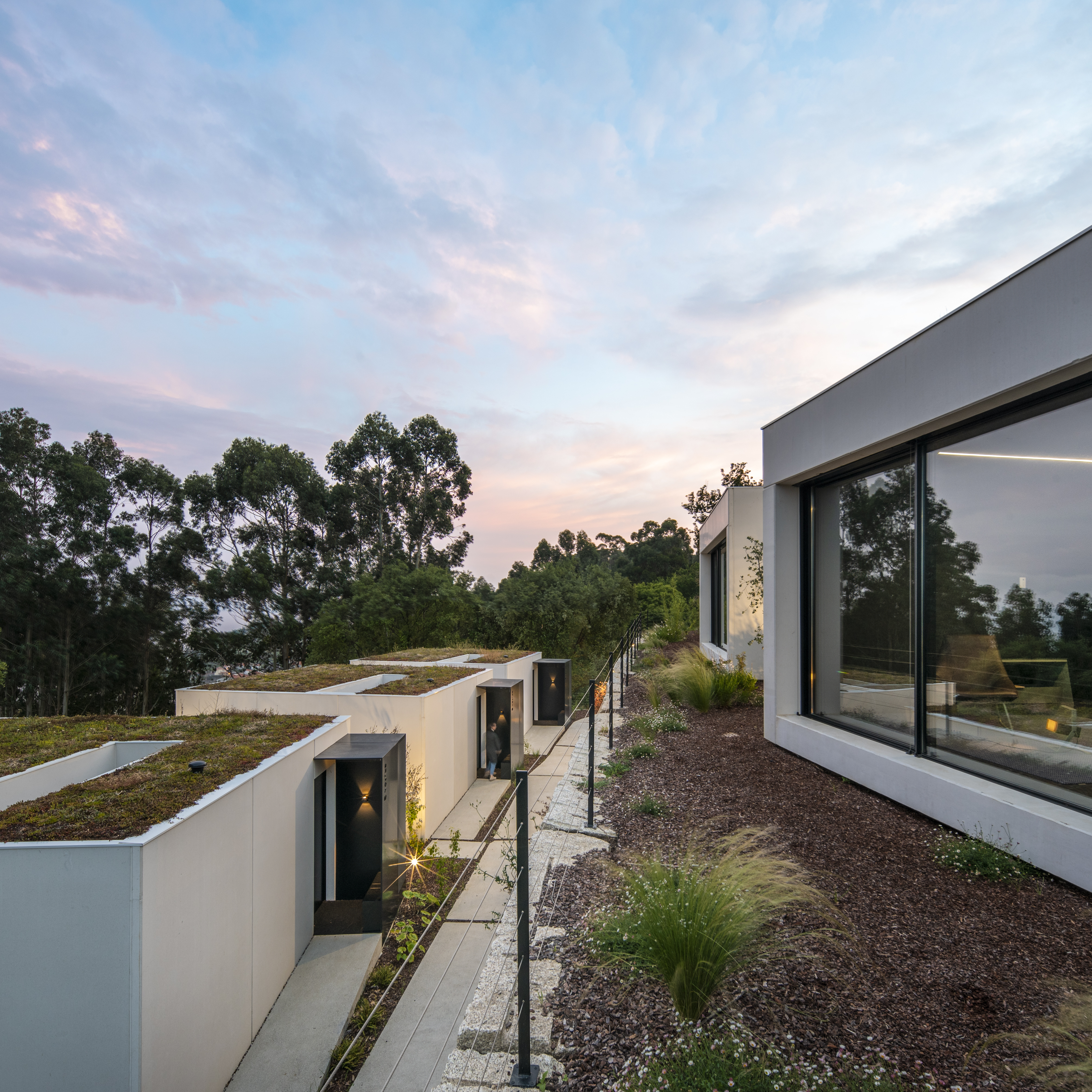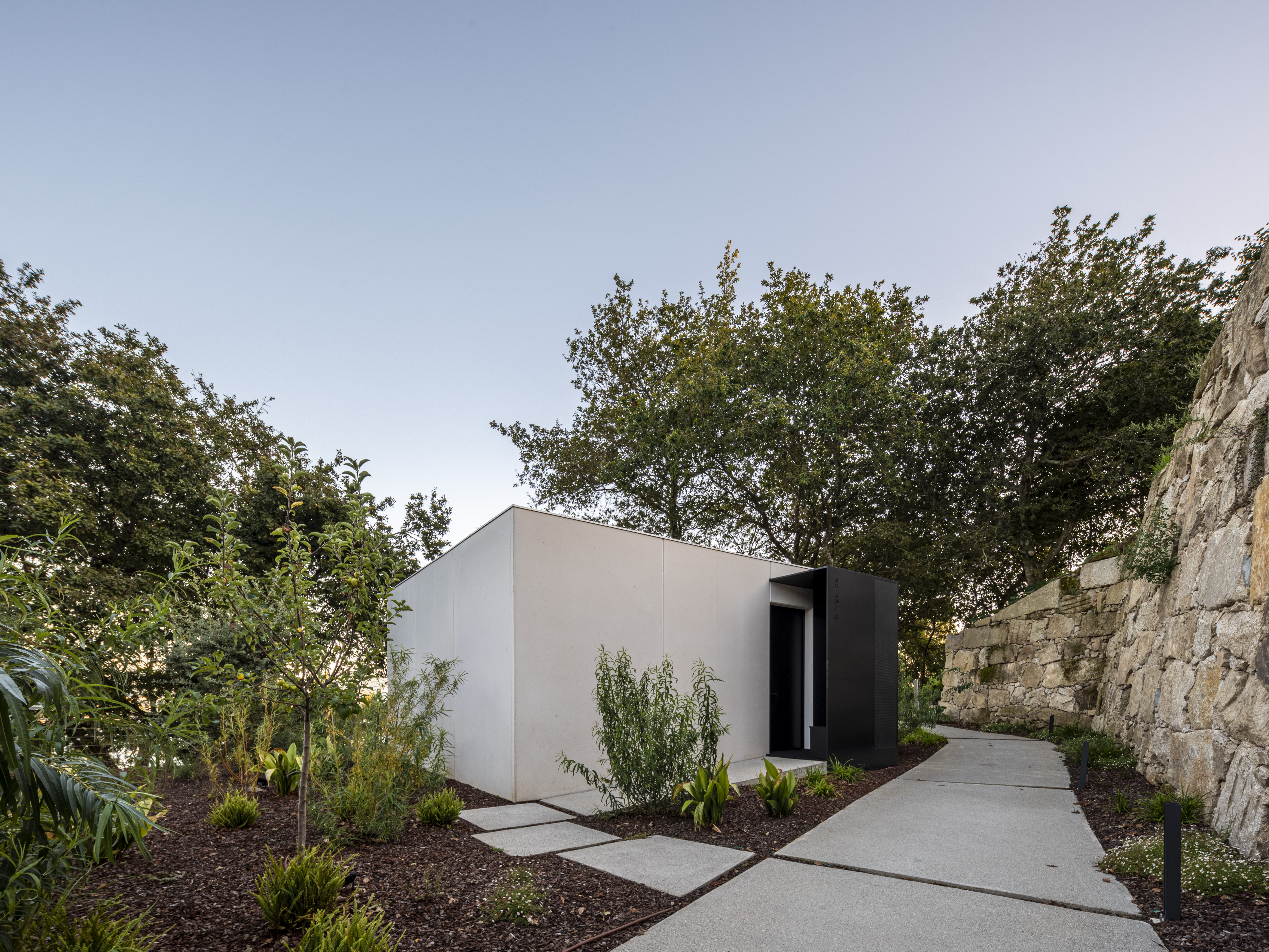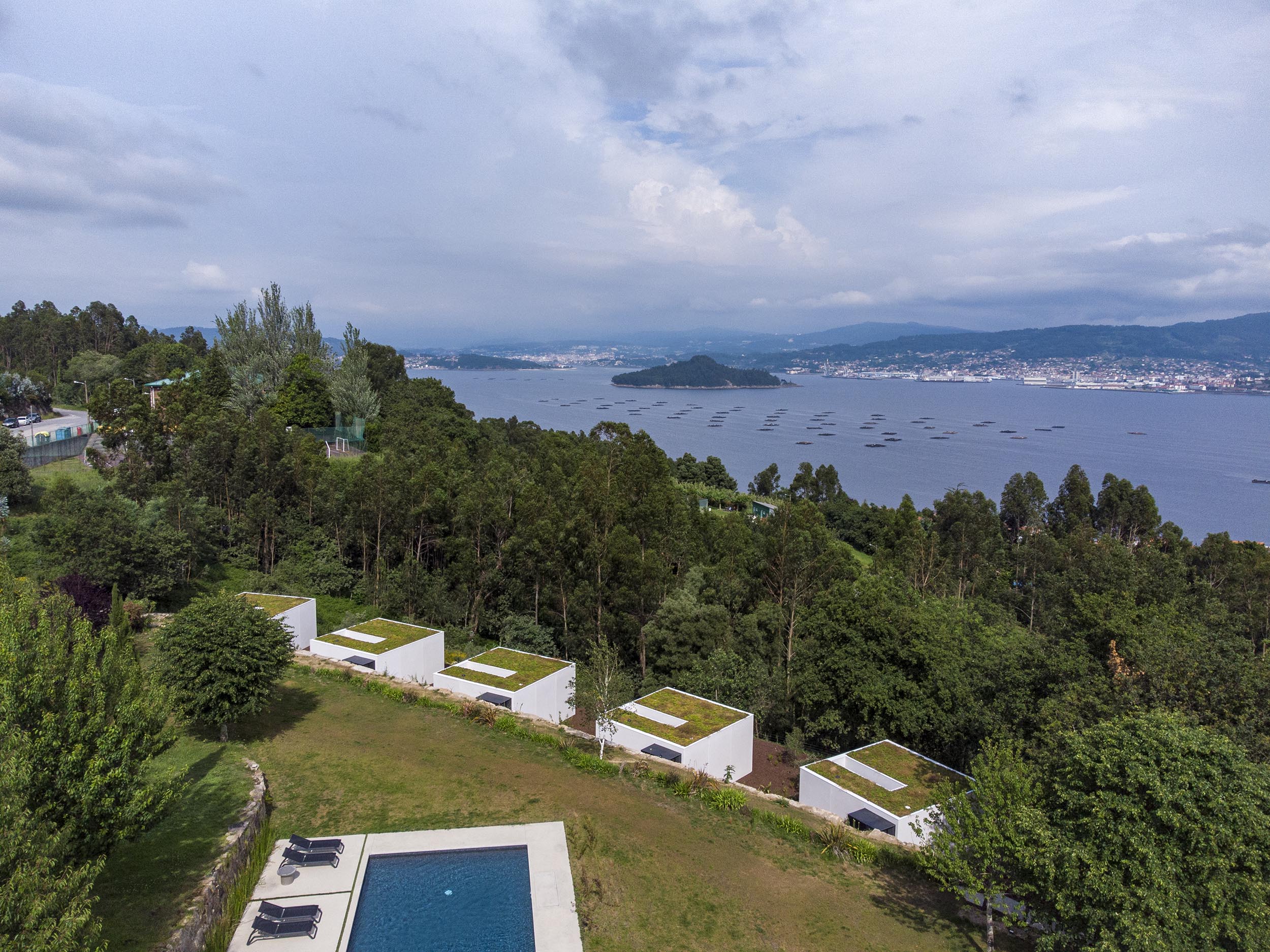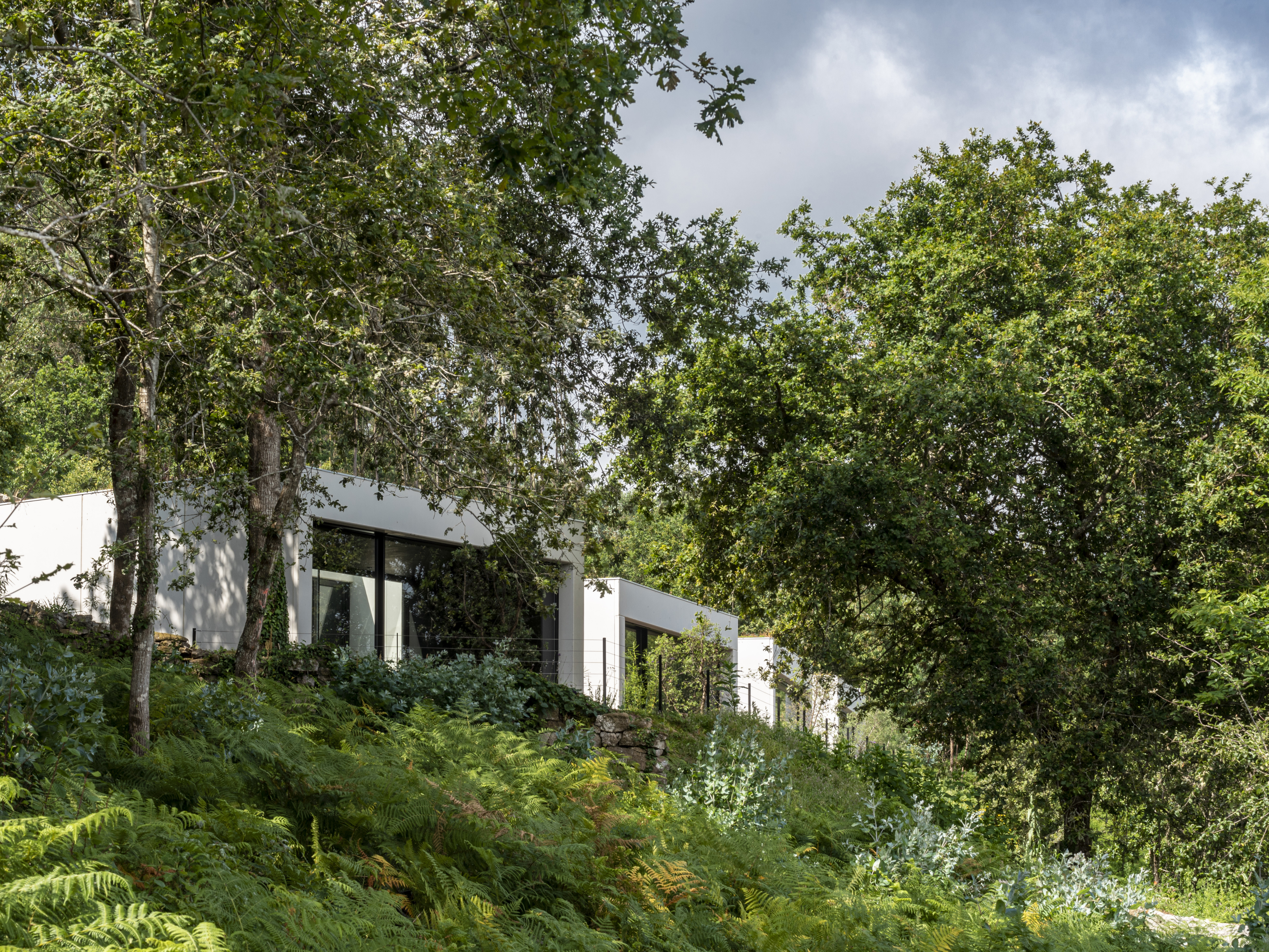 Un lugar privilegiado, rodeado de la naturaleza más salvaje, elevado y abancalado sobre la Ría, en el que existe una edificación, compuesta por tres volúmenes prismáticos acabados en color blanco, sobre un gran sótano. Tres grandes muros de contención realizados con la piedra extraída durante su construcción configuran una serie de bancales que, de alguna manera, preparaban el espacio para acoger proyectos fututos….