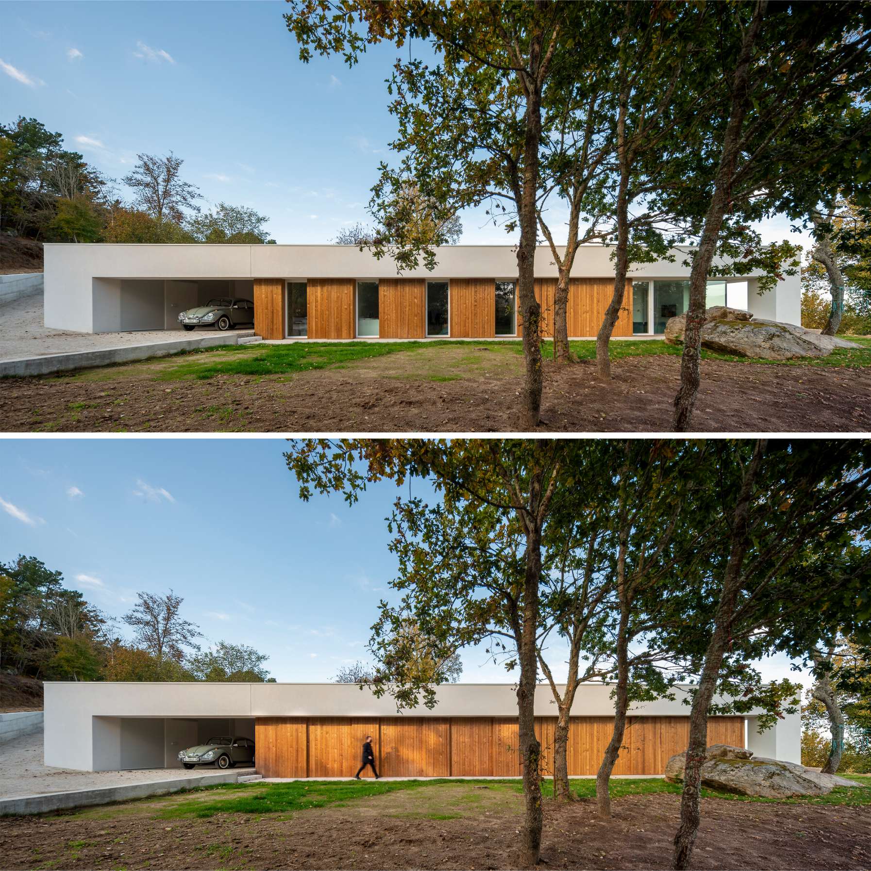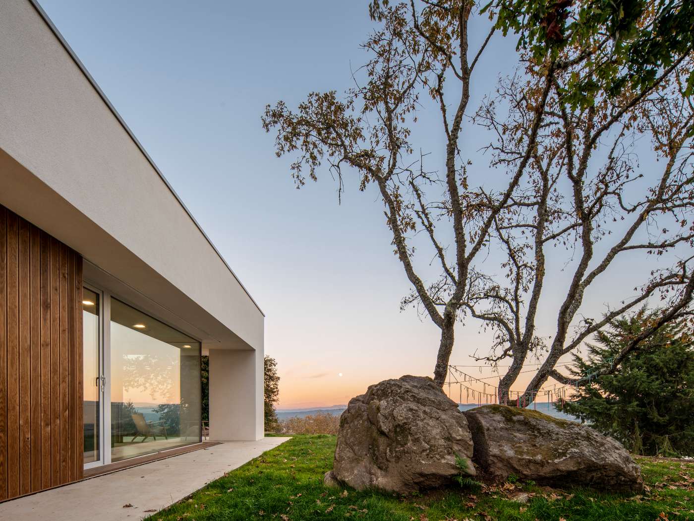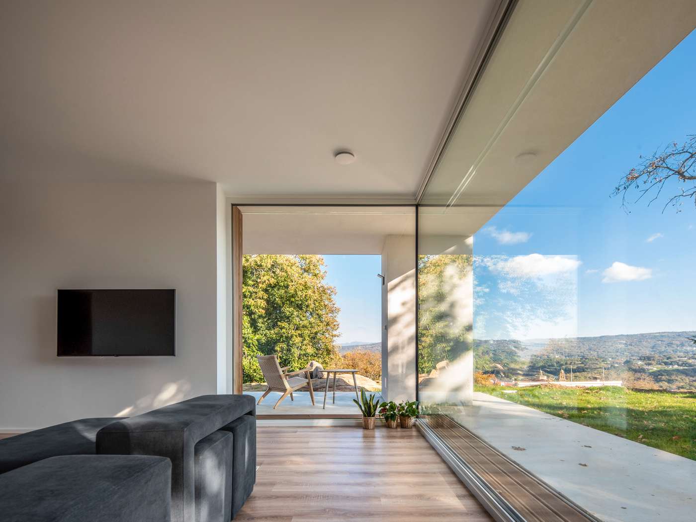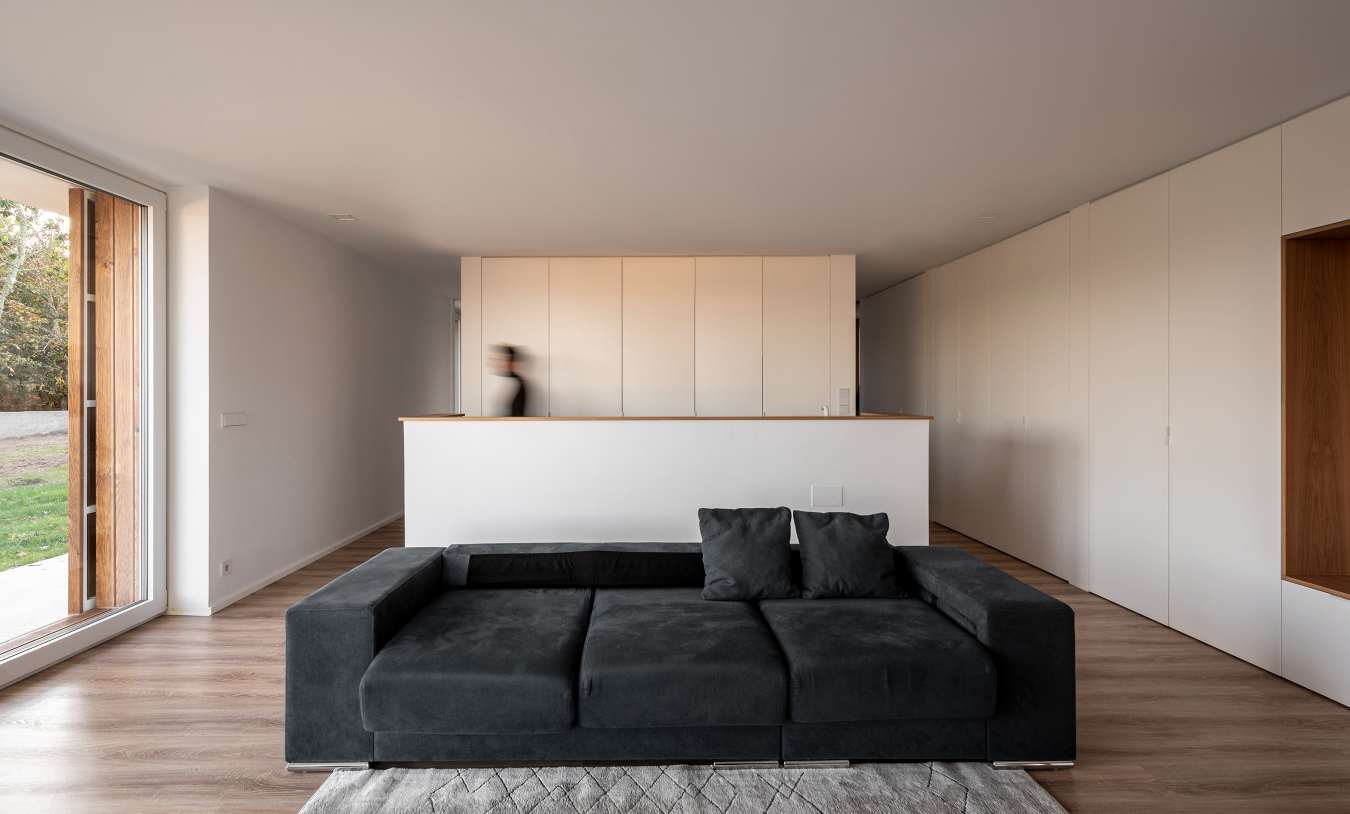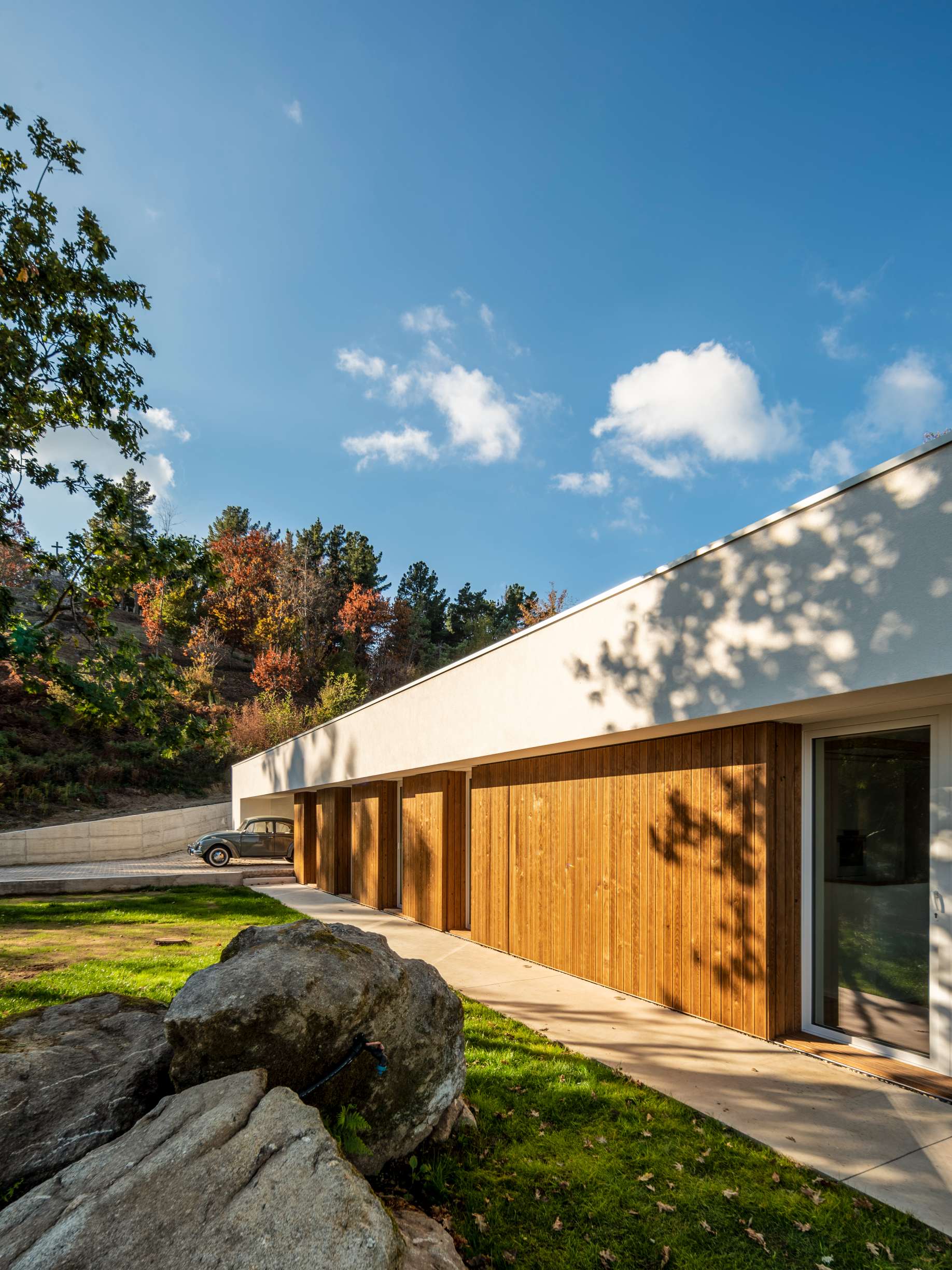 Trátase dunha vivenda certificada passivhaus de consumo enerxético case nulo, desenvolta en planta baixa, todos os espazos vivideros oriéntanse ao sur para mellorar o soleamiento, as aperturas teñen un sistema de contraventás practicables e un pequeno beirado para protección solar, a fachada norte que dá ao vial de acceso está practicamente pechada por completo, exponse un garaxe –espazo polivalente aberto situado na zona oeste da parcela, semienterrado e fóra da envolvente enerxética . Por outra banda dentro da envolvente hermética e súper illada sitúase a vivenda; co salón- cociña na párte sur –este proxectado con vistas cara á vila e cara á parcela, as habitacións tamén abertas ao sur e ao interior da parcela plantéanse como espazos polivalentes e transformables. A cuberta desta, axardinada, proxéctase como prolongación vexetal da parcela, axudando a integrala mellor no territorio. O proxecto a nivel conceptual podería definirse como un pequeno e amable contedor de madeira e vidro, envolto por outro contedor branco e vexetal incrustado no terreo, coma se fose parte deste.