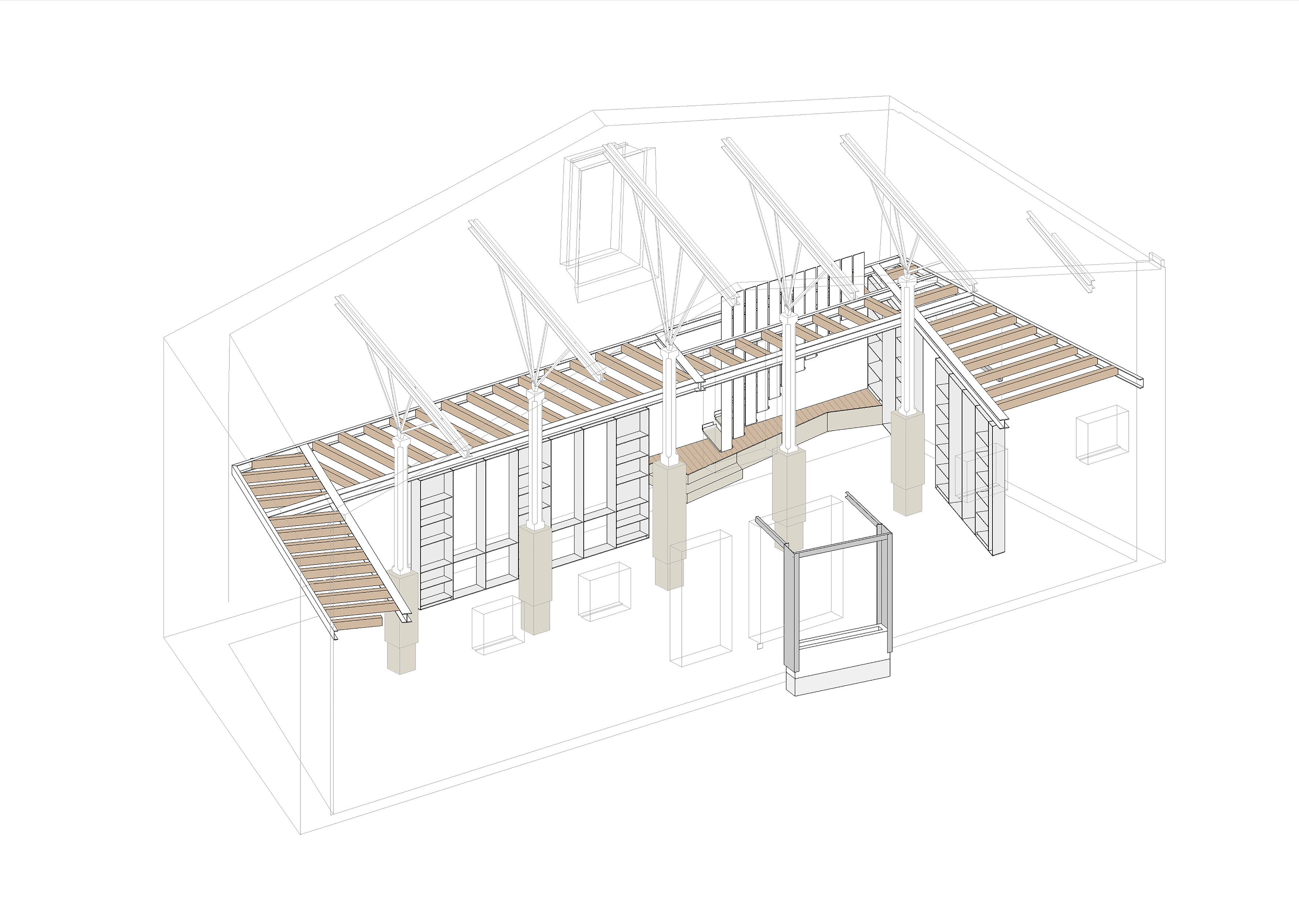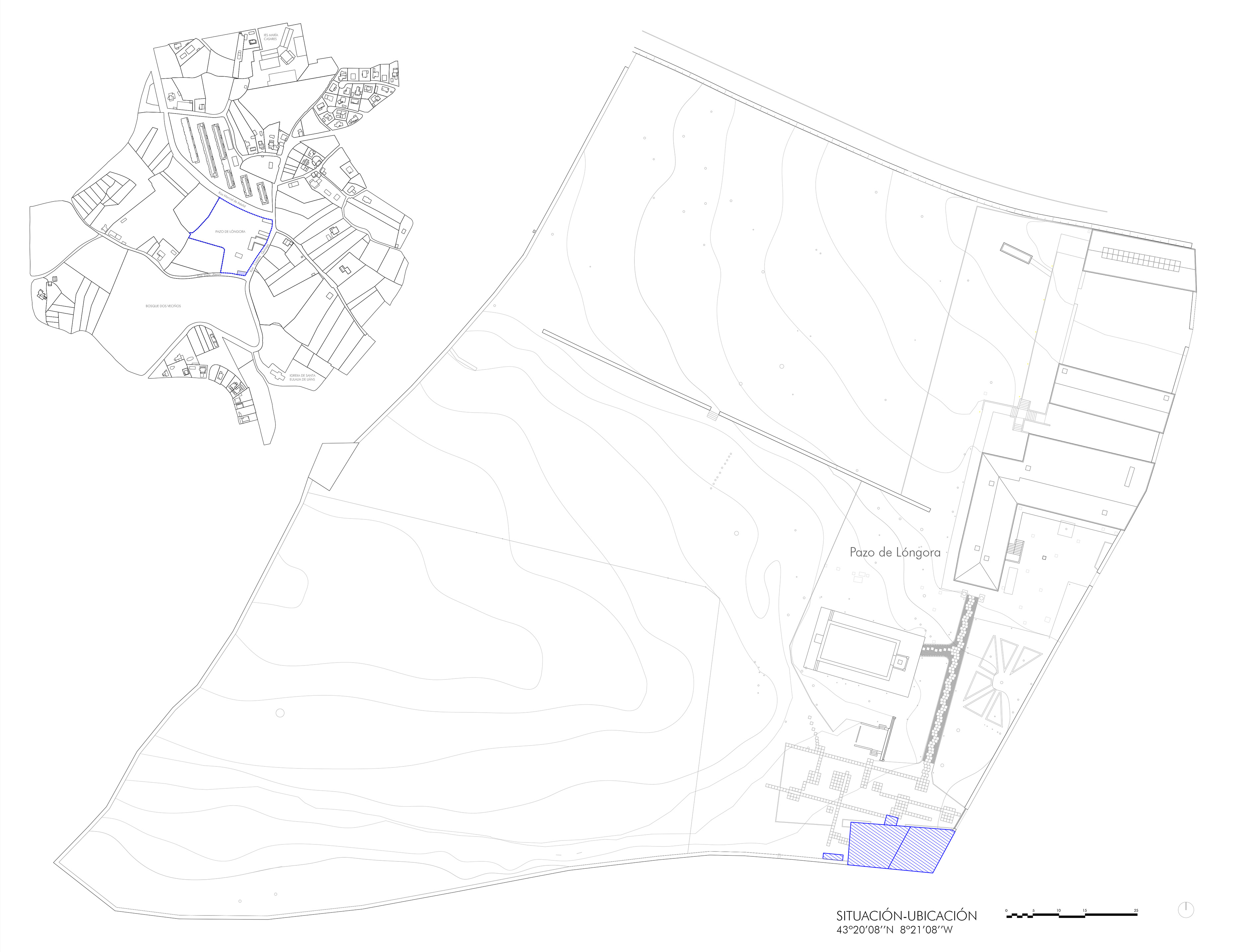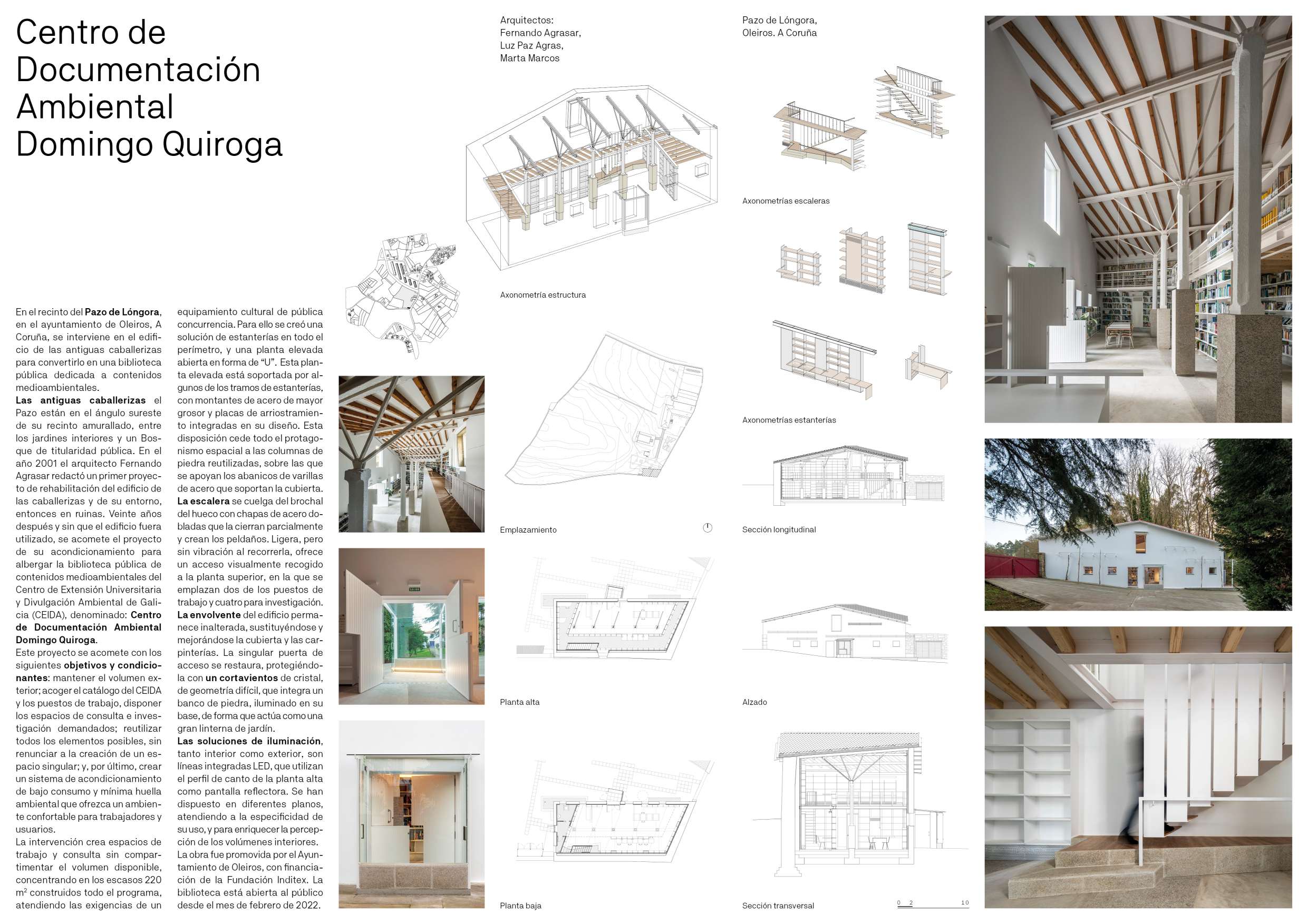 No recinto do Pazo de Lóngora, no concello de Oleiros, A Coruña, intervense no edificio das antigas cortes para convertelo nunha biblioteca pública dedicada a contidos ambientais.