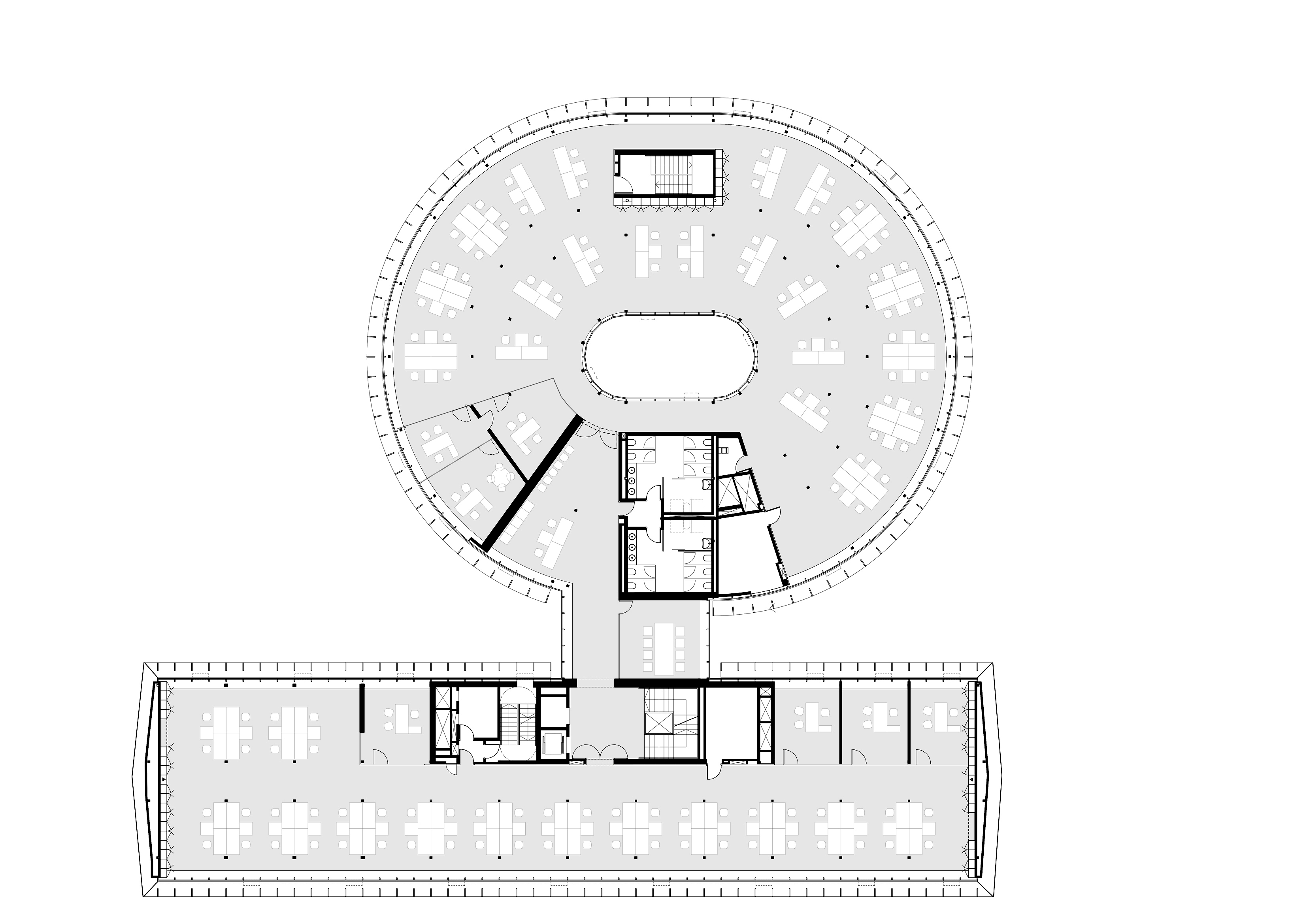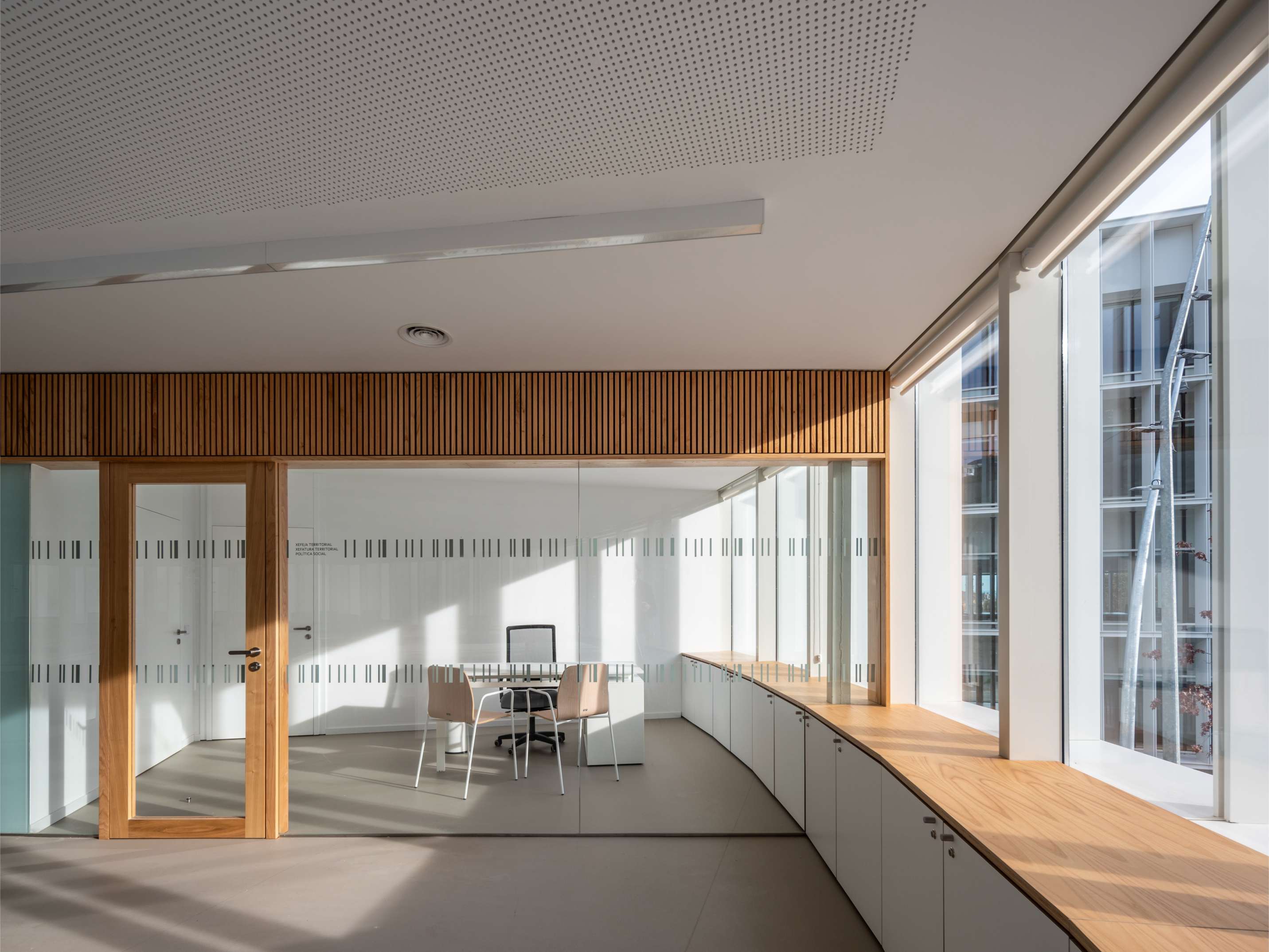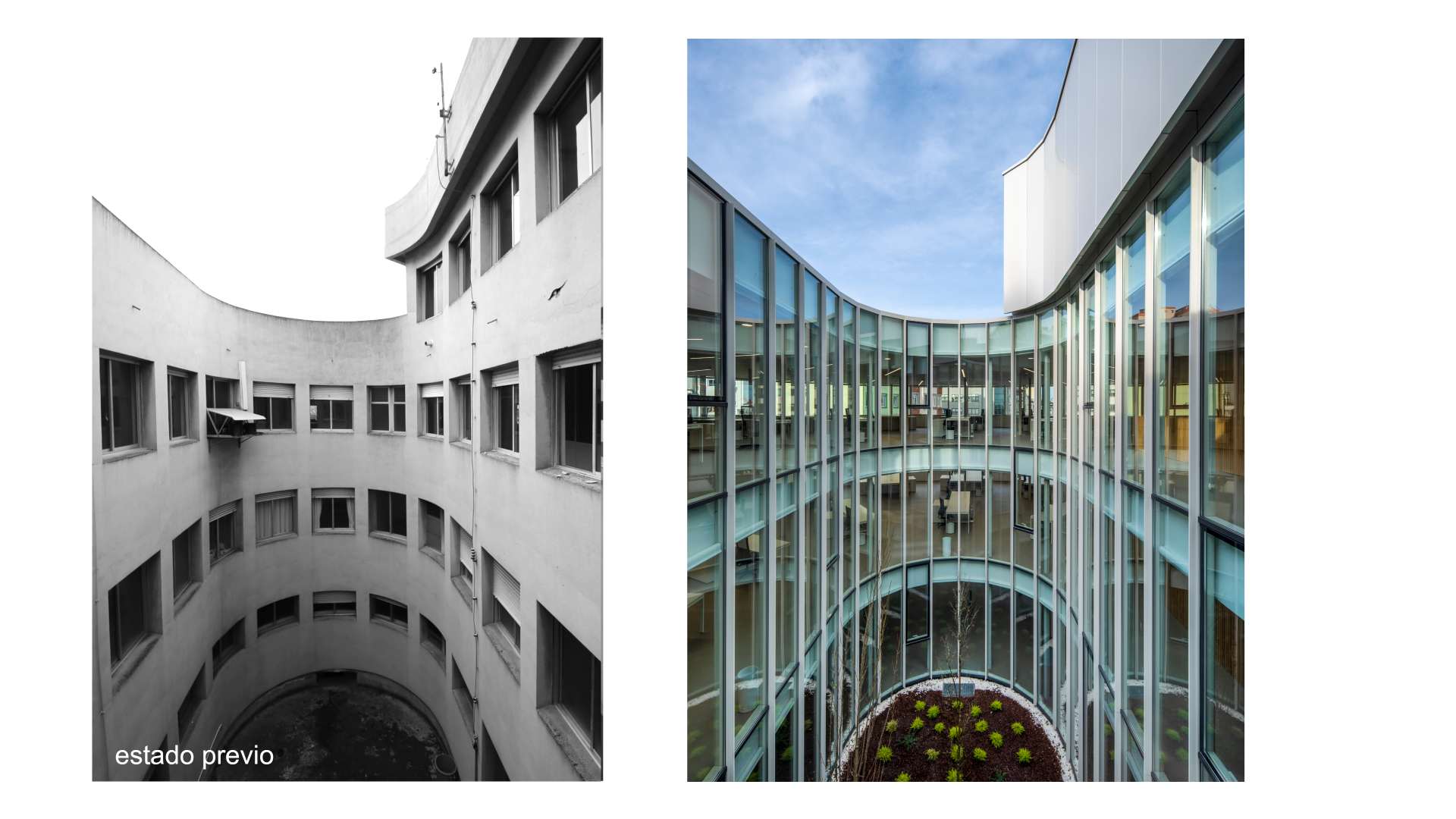 Rehabilitación integral da antiga Sede de Sanidade na Coruña (edificio do ano 1971) para destinala a edificio administrativo para a Xunta de Galicia. Edificio formado por dous volumes: prisma e óvalo. A intervención parte da idea de crear un novo espazo público, xerando unha nova praza aberta para goce da cidadanía, por onde se realiza o acceso ao edificio. Créase un novo núcleo de comunicacións, aseos e locais técnicos na intersección dos dous volumes, deixando o resto de espazo como unha zona de traballo aberta e diáfana. Unha celosía de aluminio branco dá ritmo e vibración á fachada, á vez que o dota do carácter institucional necesario.