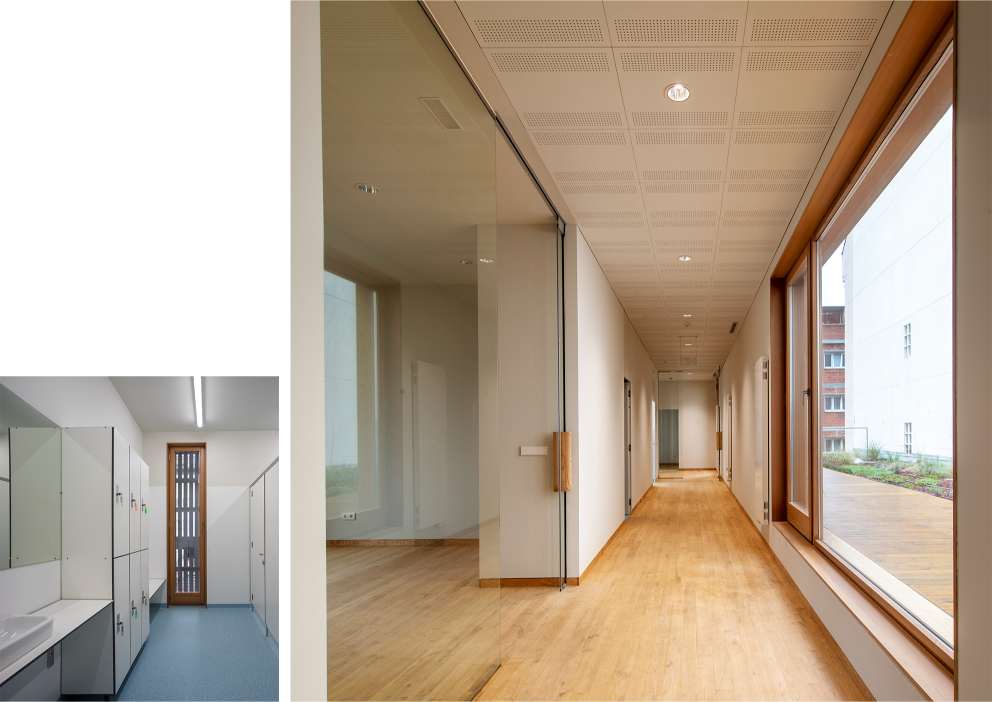 Por outra banda, valorouse o impacto dos edificios de madeira sobre os usuarios como moi positivo pola sensación de confort que aportan e polo entorno seguro, saudable e acolledor que crean. A utilización de materiais naturais é un dos patróns de deseño biofílico (a biofilia é a conexión biolóxica innata entre seres humanos e natureza) usada neste proxecto. Outros recursos utilizados son a conexión sensorial coa natureza, a presenza de luz natural dinámica e difusa, ou a conciencia dos cambios estacionais a través da vexetación.