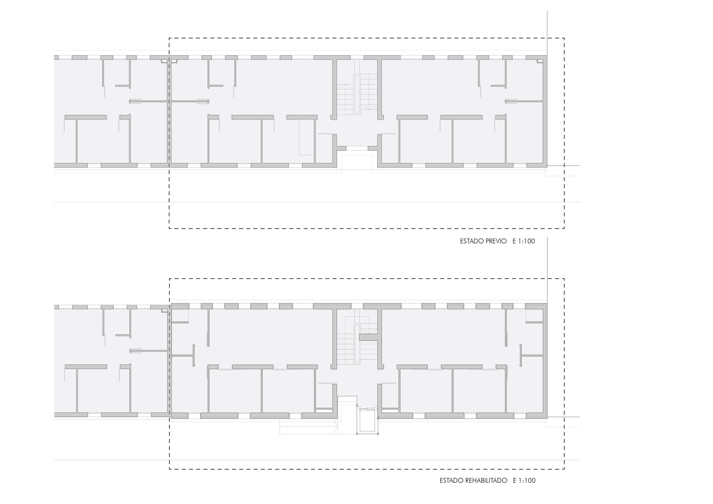 O obxectivo da intervención é: facilitar o uso aos novos habitantes, xerando espazos de calidade e resolvendo o problema da accesibilidade da maneira máis racional posible, de tal forma que se manteña a identidade do bloque, para iso mantense a súa estrutura orixinal no interior e as súas aperturas na fachada. Trabállase do modo máis racional posible, tendo en conta o axustadísimo presuposto manexado.