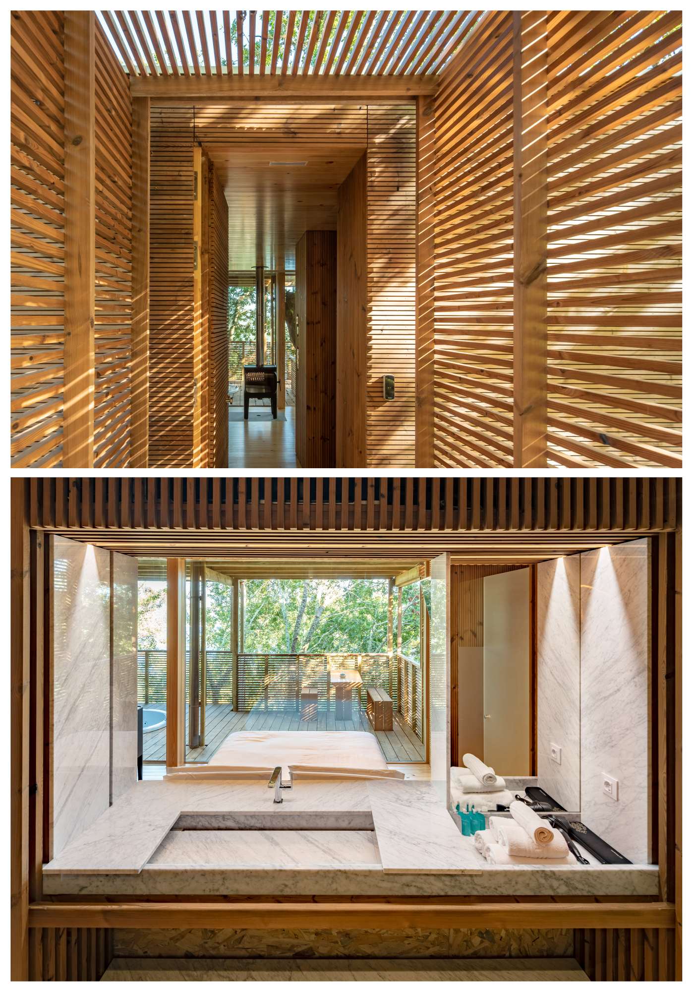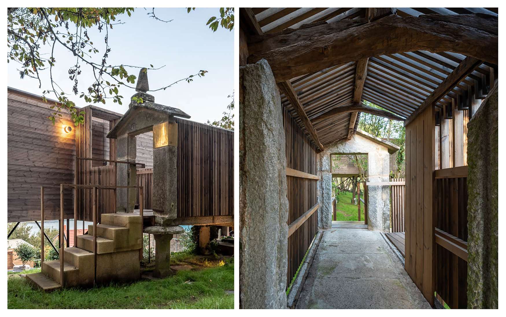 Nun cuarto nivel defínense construtivamente as novas edificacións e as rehabilitacións cunha sonora concatenación de celosías de madeira coas que se resolve dende a estrutura ata o mobiliario, en honra das arpas máis famosas do mundo que, durante moitos anos encheron de harmonía aquel lugar tan fermoso. Toda a intervención responde a este orde musical a través dun elaborado sistema construtivo en madeira que determina acabados y proporcións.