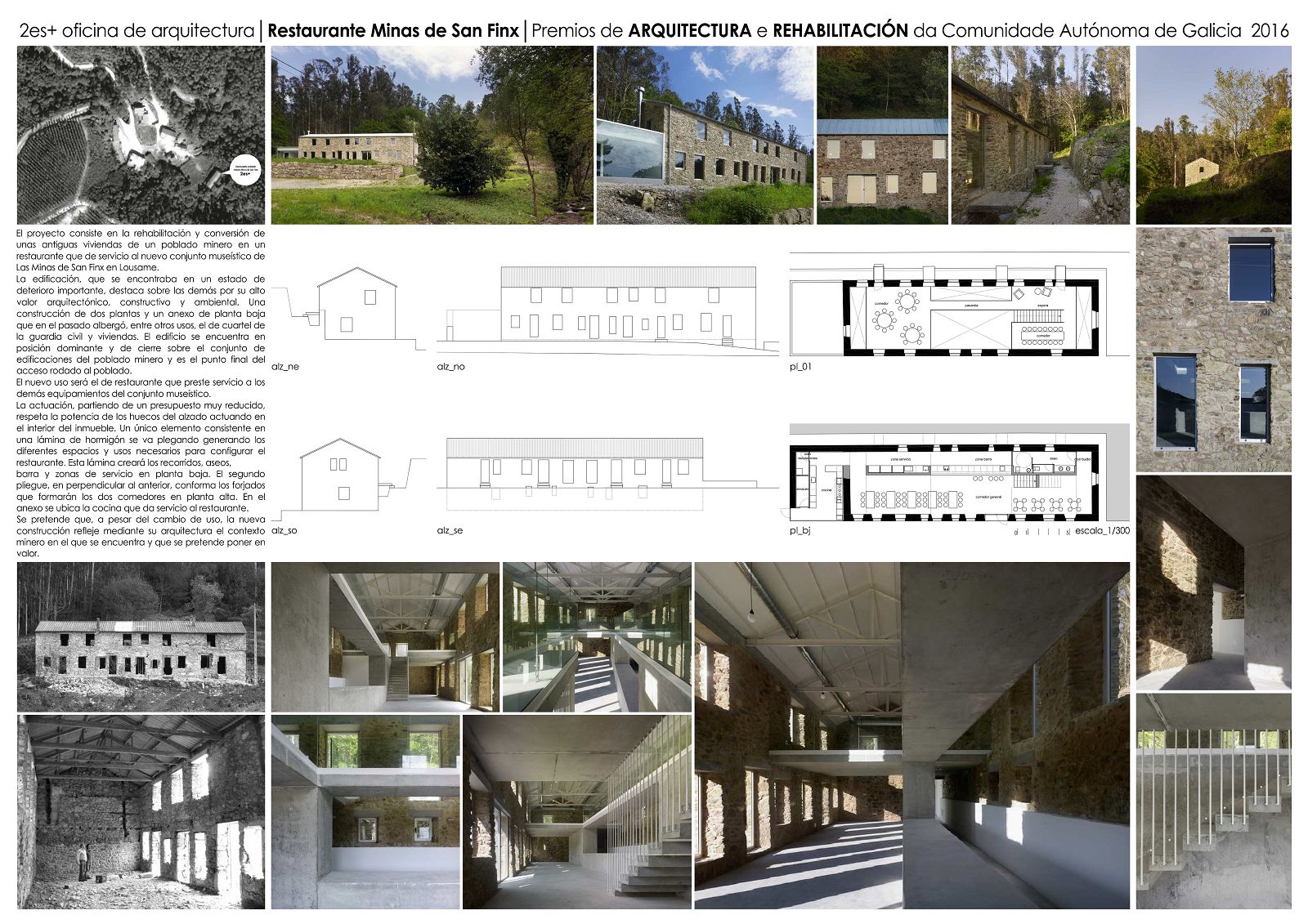 El proyecto consiste en la rehabilitación de unas antiguas viviendas de un poblado minero en un restaurante que de servicio al nuevo conjunto museístico de Las Minas de San Finx, en Lousame.