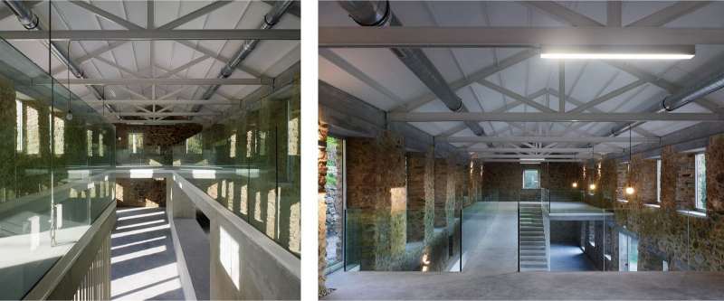 La edificación se encontraba en un importante estado de deterioro, en una zona increíblemente húmeda, al borde de un río, por lo que hubo que hacer una importante labor de impermeabilización, drenaje y de saneamiento de los muros y solera. Para crear la estructura de cubierta se utilizan unas cerchas metálicas, la cubierta se sustituye por una nueva de zinc, los muros se encintan y se crean unos dinteles de hormigón para regularizar y asentar los huecos.