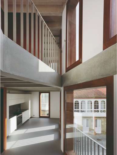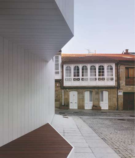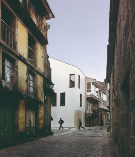 Resolver con claridad la escena urbana, aportando una visión renovada del modo de construir, sin olvidar la propia identidad, mediante referencias a la historia y cultura del lugar. Corcubión es una villa marinera con un casco histórico directamente relacionado con el mar. Frente a la casa anterior, con sólo dos fachadas, ésta propone una tercera que da solución a uno de los grandes paños ciegos que habían quedado al abrir una calle a través de la manzana.