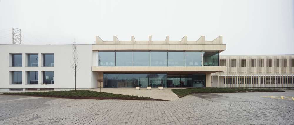 A sinxeleza volumétrica faise extensiva ao propio deseño das fachadas, que se proxectan con peches de vidro e celosías de protección solar, fixas en existentes e regulables na conexión, onde a carpintería oculta potencia a sensación de «conexión» visual entre os dous edificios existentes, así como entre as visitas, a paisaxe e o exterior do recinto, co propio edificio e a fábrica.