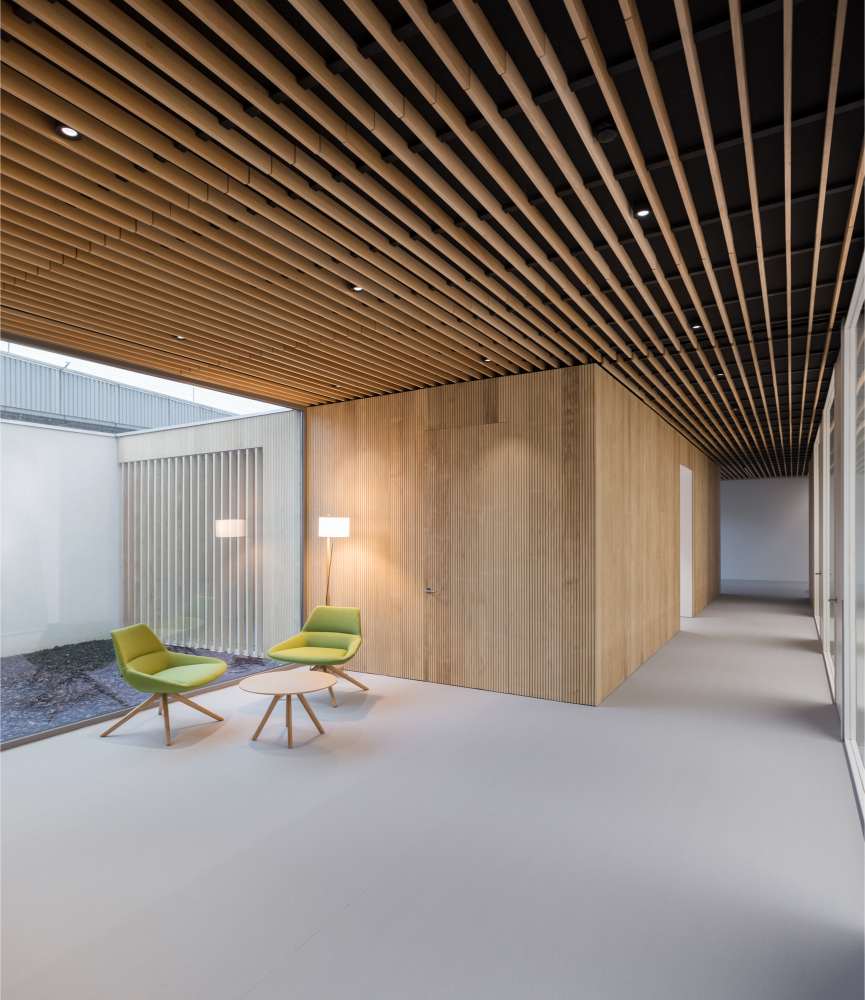 Os novos recintos constrúense como un lugar común para traballadores da empresa e visitantes. Un espazo para o encontro e a convivencia máis aló do traballo, que dota a sede dunha imaxe representativa máis aberta e moderna e pon en valor a orixe industrial, natural e material da que procede FINSA.